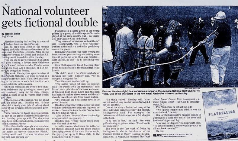 The publisher saw an opportunity to publicize Flatbellies when it was learned that the “Peachy” character (based loosely on Fletcher Handley, El Reno, OK) worked every year as a marshal at the Masters Golf Tournament. With the release of the book timed with the Masters, the Augusta Chronicle picked up on the idea and published a feature story.